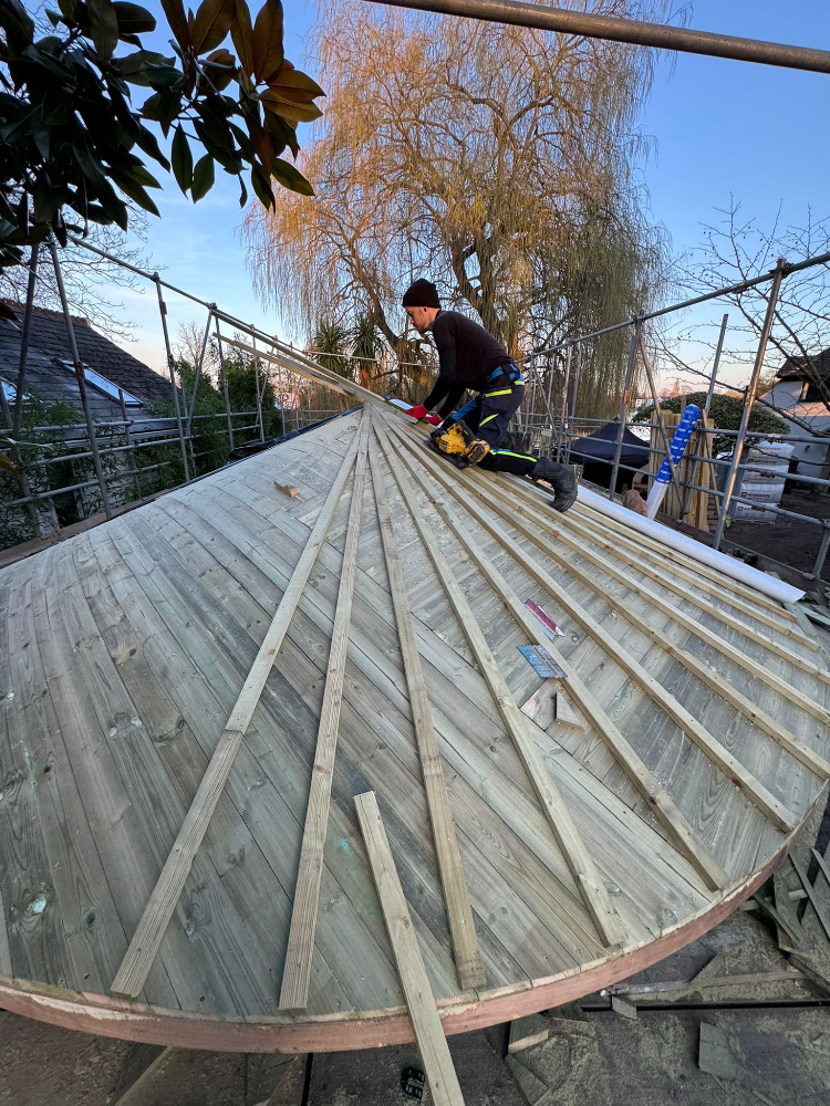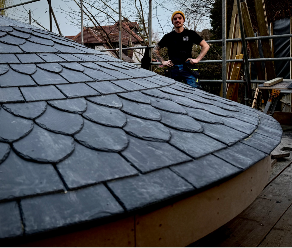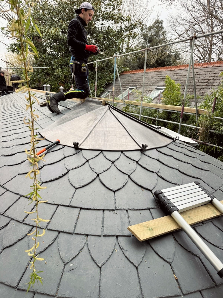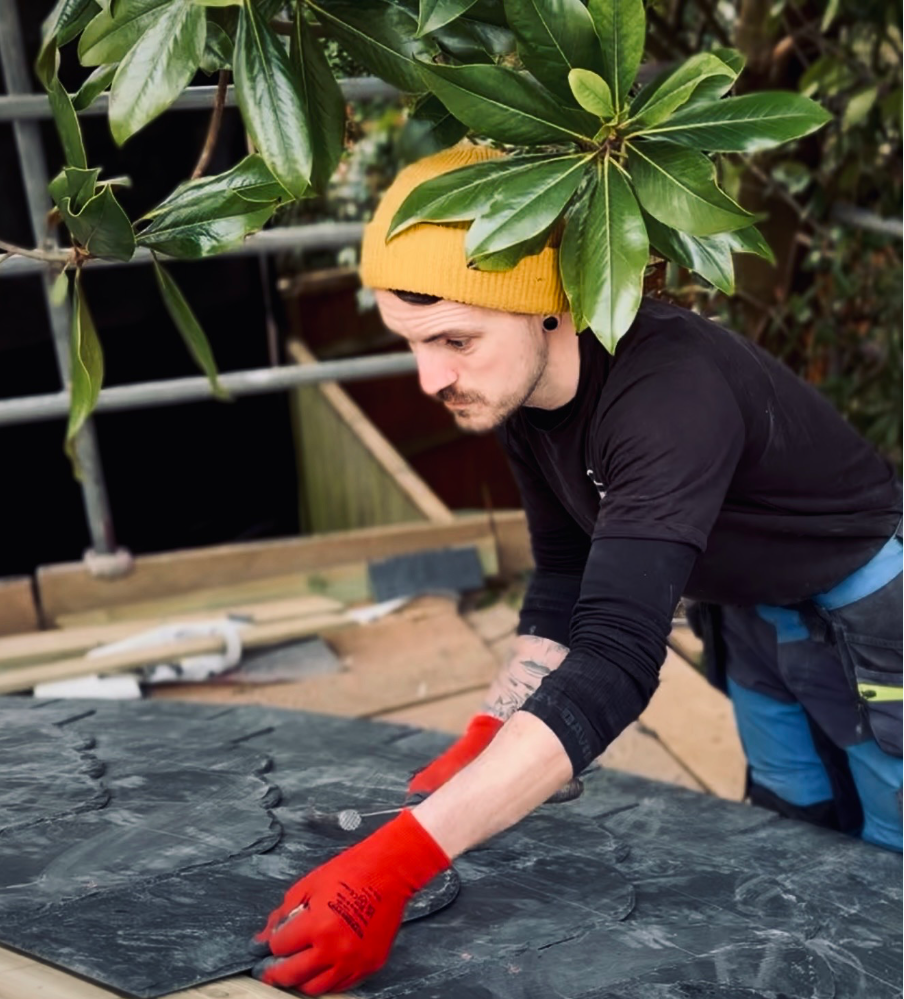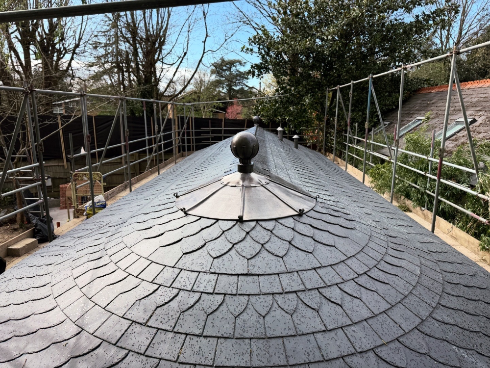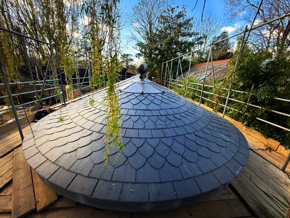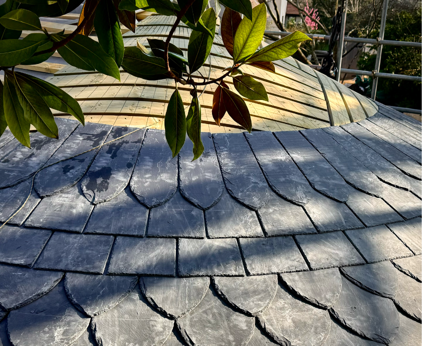 Although modest in scale, the project demanded a high level of precision and care. The geometry of the roof required careful setting-out from the outset, ensuring that every course of slate would sit naturally and consistently as the roof formed. It’s the kind of work where small inaccuracies quickly show, so patience and attention to detail are everything.